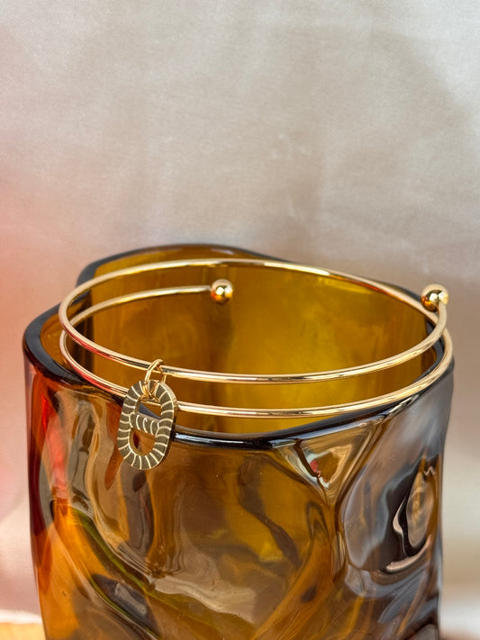 Bracelet double jonc en acier inoxydable doré avec pendentif – Chic & raffiné